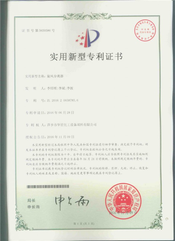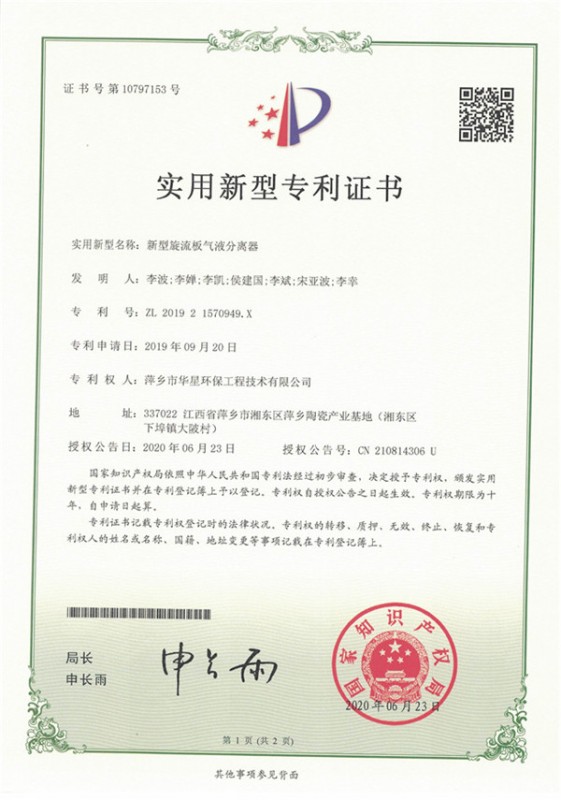 - 新型旋流板氣液分離器