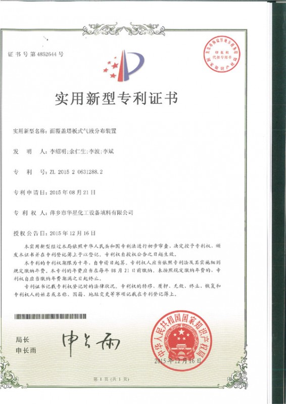 - 面覆蓋塔板式氣液分布裝置-實用
